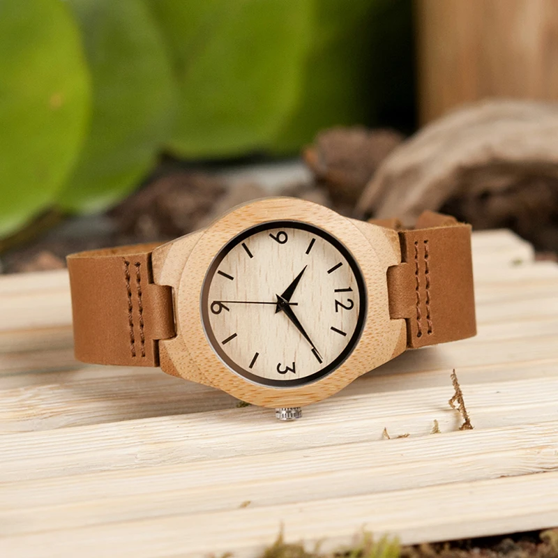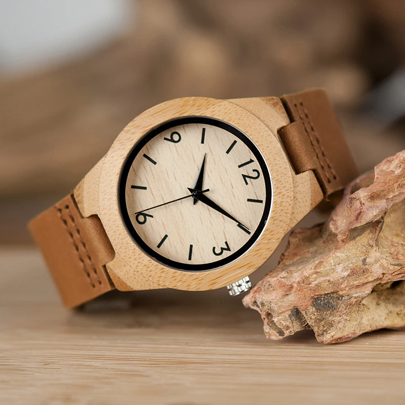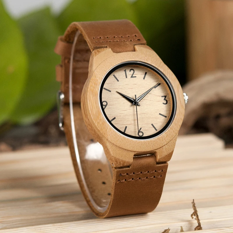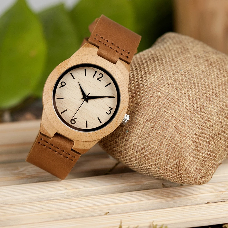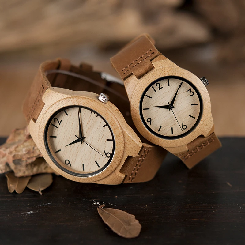 | Men Women's Wood Watch Japanese Movement Bamboo Wooden Lovers' Watches with Genuine Leather Wristwatch relogio masculino V-A31 |