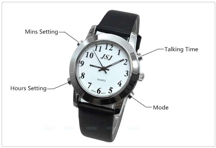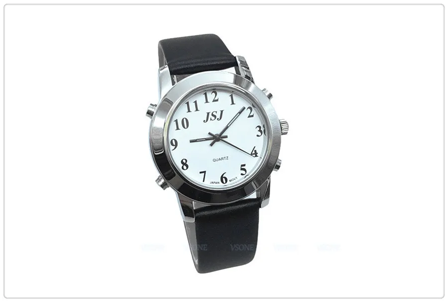 | Portuguese Talking Watch for Blind People or Visually Impaired with Black Leather Band |