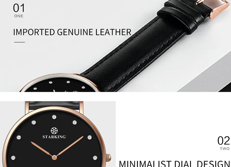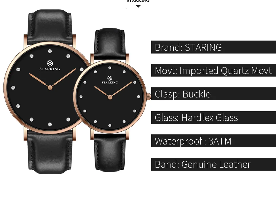 | STARKING Couple Lover Watch Quartz Genuine leather 30M Waterproof Black Simple Watch Men And Women Valentine Day Gifts Hodinky |