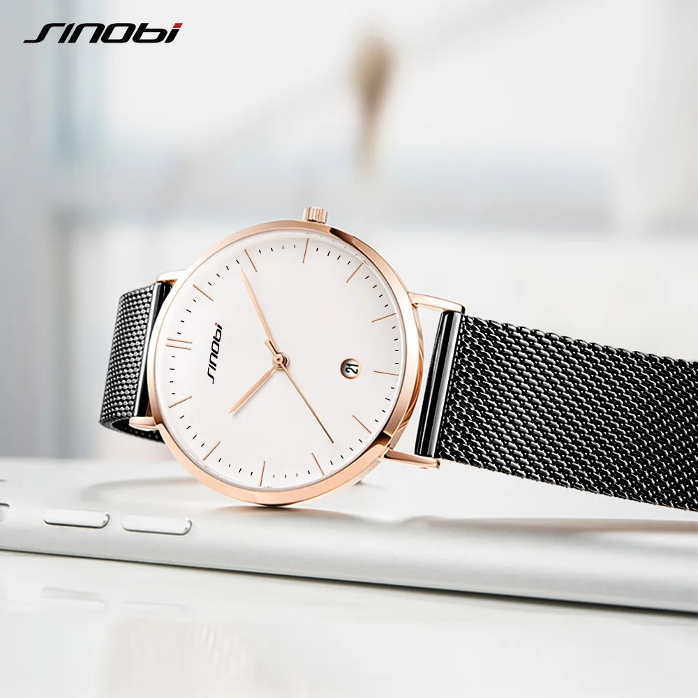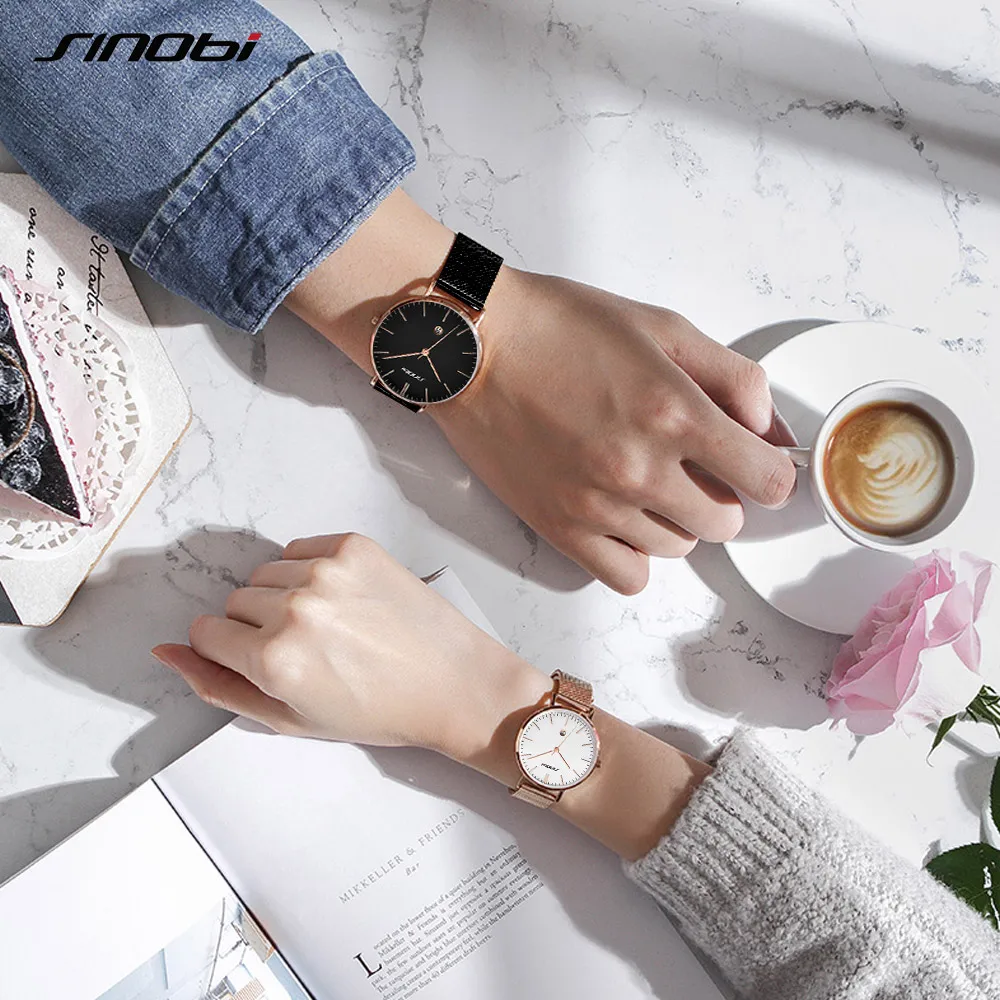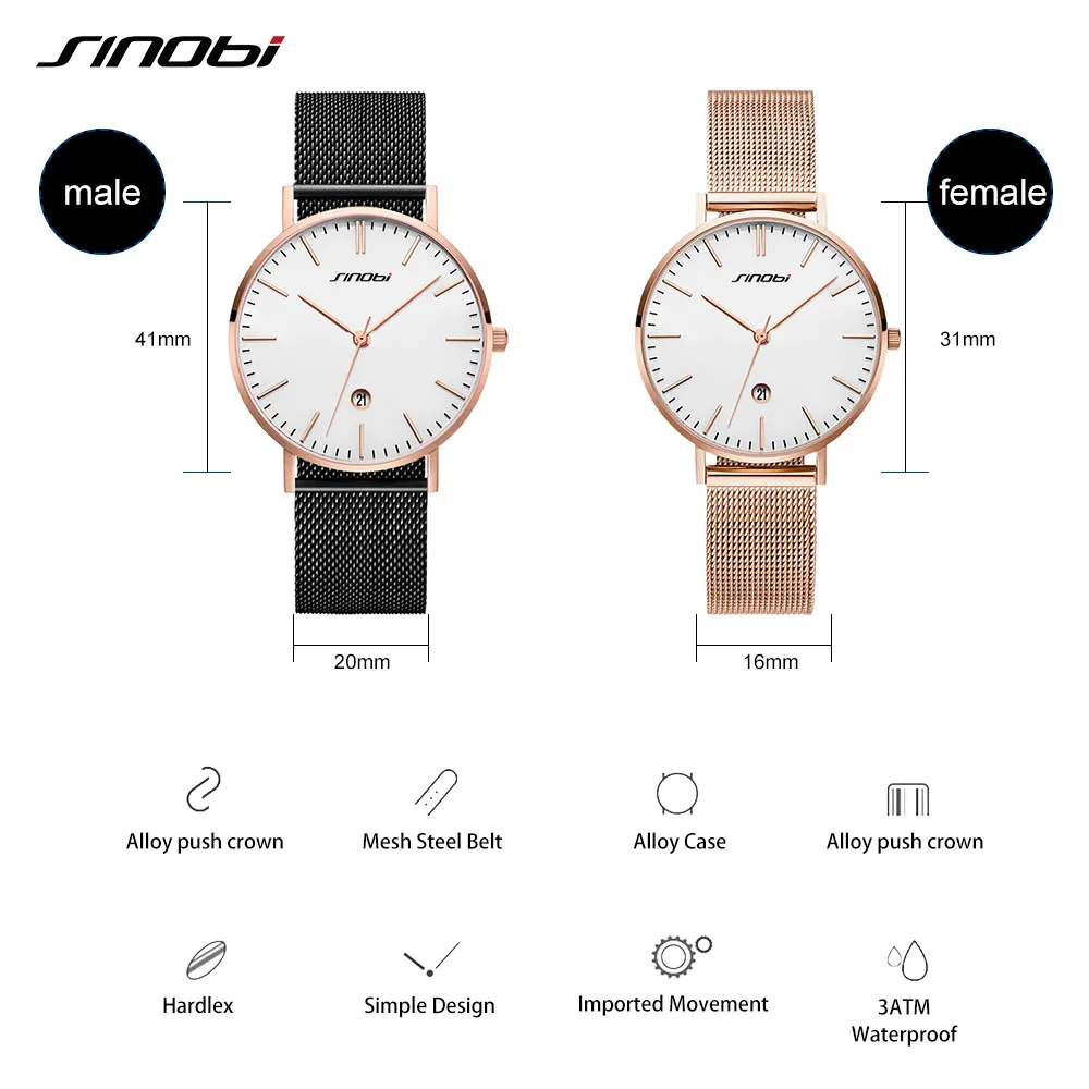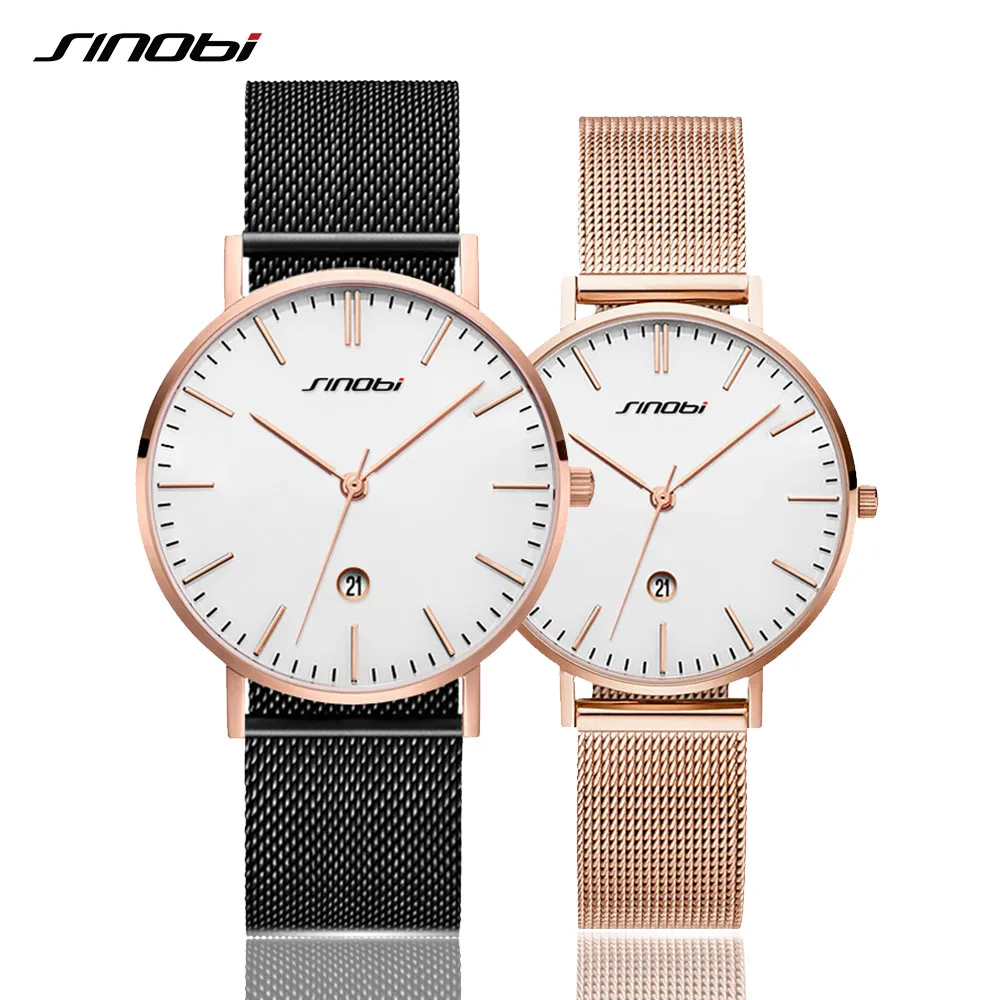 | New Valentine Gift Lovers Watches SINOBI Simple Gold Mesh Belt Wrist Watches Couple watches Men Women Watch Clock Girls Watches |