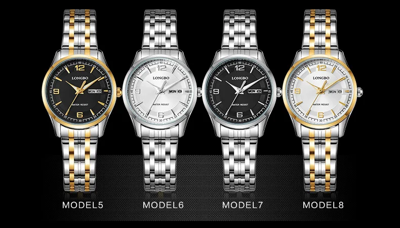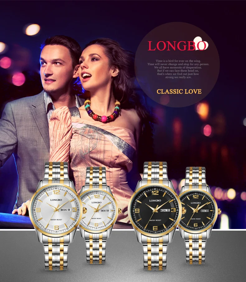 | LongBo Fashion Couples Wristwatches Men/Women luxury brand Full steel lovers women Dress watch Relogios Couple Quartz Watches |