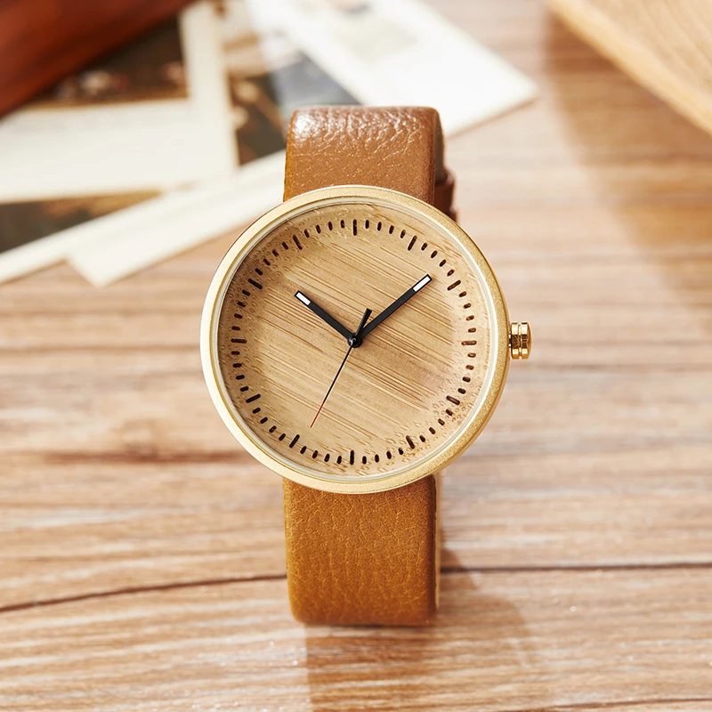 | Women Men Bamboo Wood Watch Mens Women's Wooden Wristwatch Leather Retro Couple Watch Clock reloj de madera Relogio Masculino |