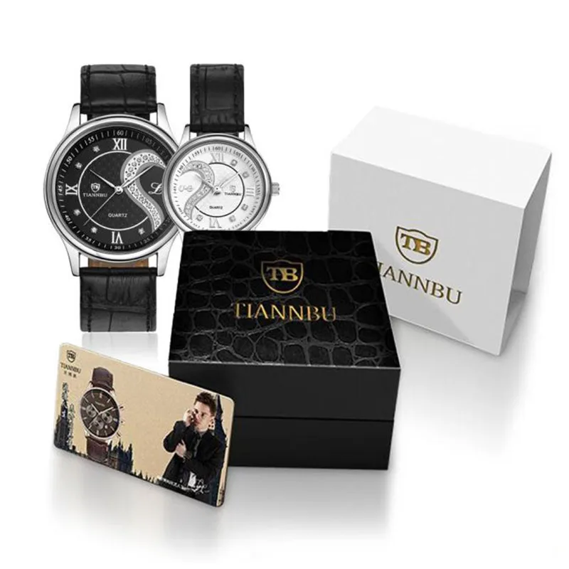 1 Pair/2pc 1 Pair Tiannbu Ultrathin Leather Romantic Fashion Couple Wrist Watches(with "Tiannbu" brand Box )