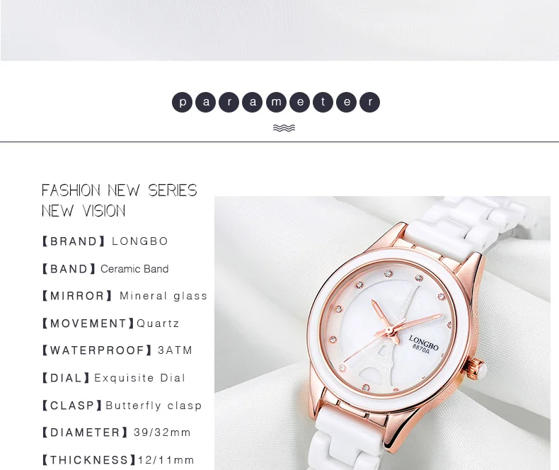 The best product you are looking for is "LONGBO Top Brand Men Women Luxury Couple Lovers Wrist Watches Fashion Geneva Watch Ceramic White Gold Strap Clock Reloj Mujer". This product is available and ready to be purchased. Get attractive discounts every time you shop in our store (aliexpress.com). Aliexpress also provides a coupon of $ 3 for the first buyer to shop there. don't forget to bookmark our store page so you can go shopping again anytime..
