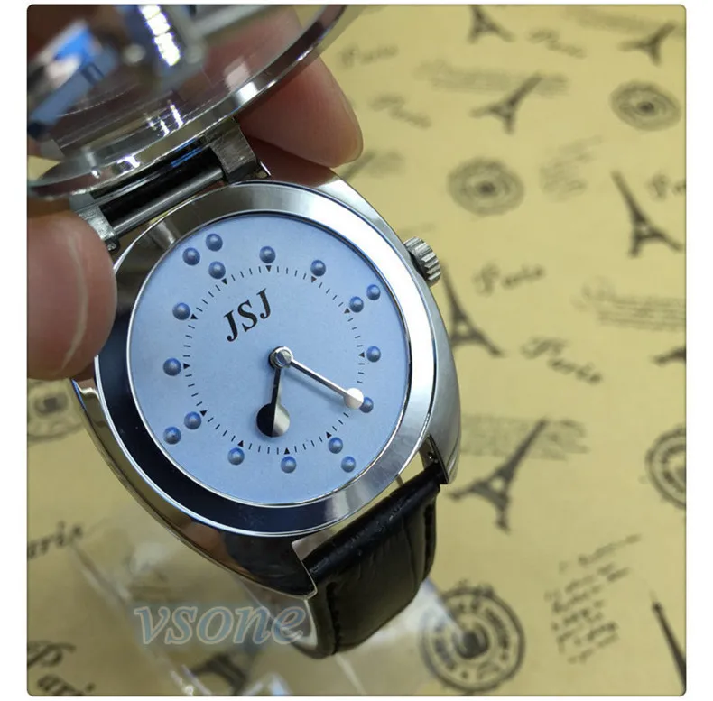 | Braille Tactile Wrist Watch with Blue Face,Leather Strap |