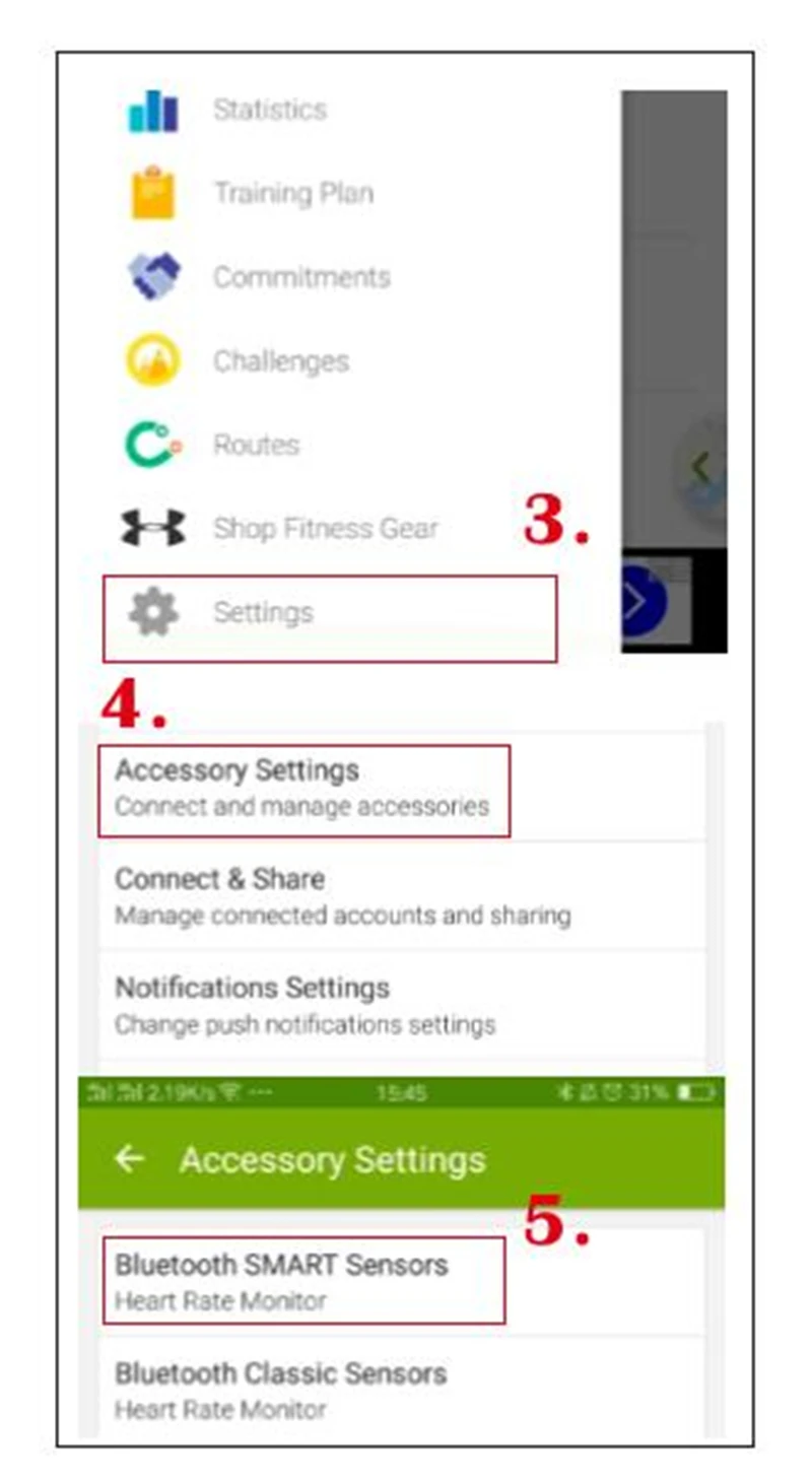 BT & ANT+ CONNECTING: Connect the strap wirelessly via BT 4.0 or ANT+ with your phone, GPS watch or treadmill.