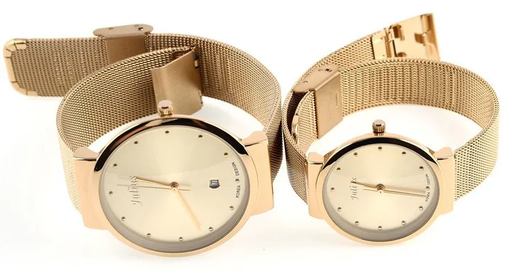 Best Price Comparison With Thin Men's Watch Women's Watch Japan Quartz Couple Hours Fashion Gold Stainless Steel Bracelet Lover's Birthday Gift Julius Box