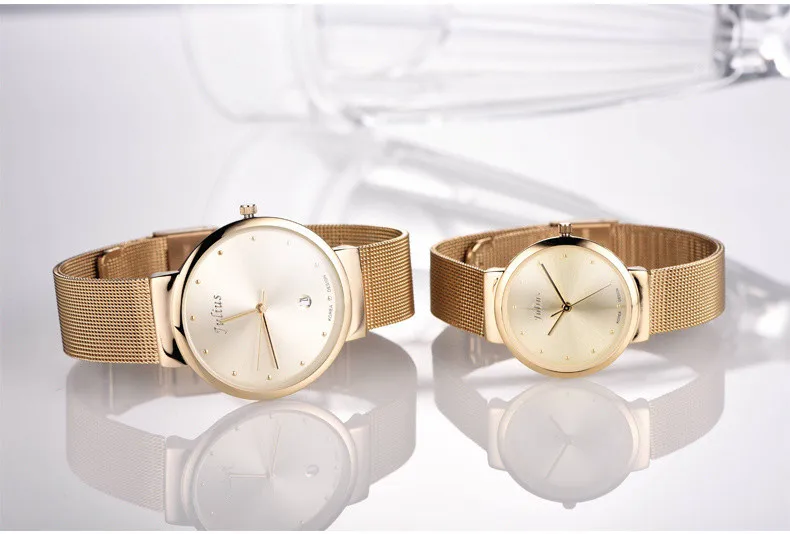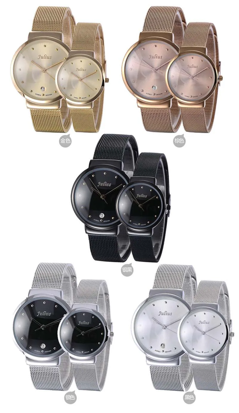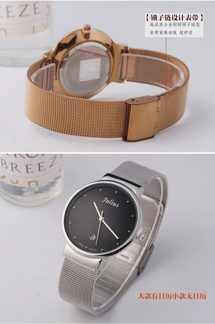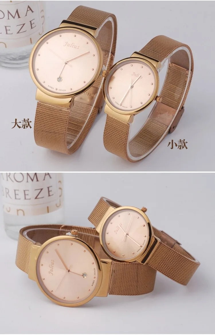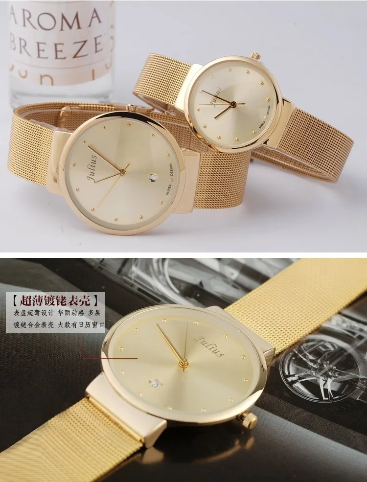 | Thin Men's Watch Women's Watch Japan Quartz Couple Hours Fashion Gold Stainless Steel Bracelet Lover's Birthday Gift Julius Box |