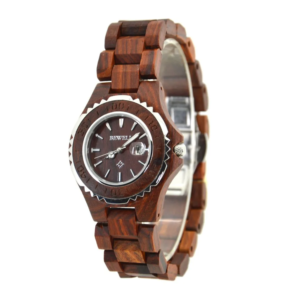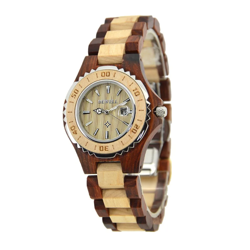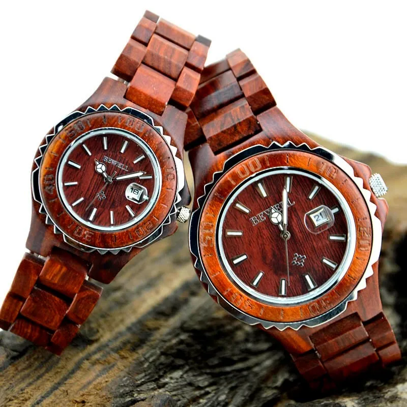 | BEWELL 100B Couple Wooden Quartz Watch Men and Women Handmade Lightweight Date Display Fashion Watches Gift Box and Watch Tools |